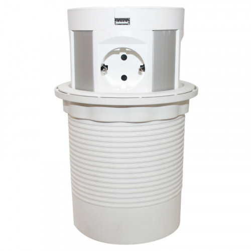 SETE Удлинитель наст. выдв., 2*USB,230V, круглый, с беспров.зар.БЕЛЫЙ, SPO-WC-W