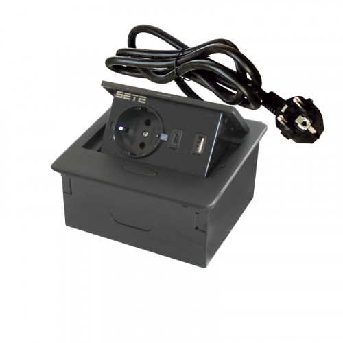 SETE Удлинитель SBT-1UCT-20 встраив.,1 гнездо, 1USB, 1 type C, ЧЕРНЫЙ,с кабелем