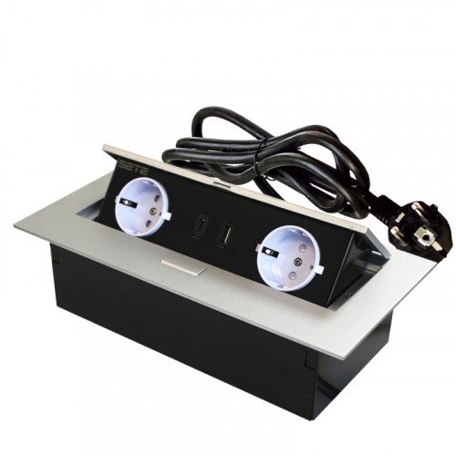 SETE Удлинитель SBT-2UCT-80 встраив.,2 гнезда, 1 USB, 1type C, CЕРЫЙ,с кабелем