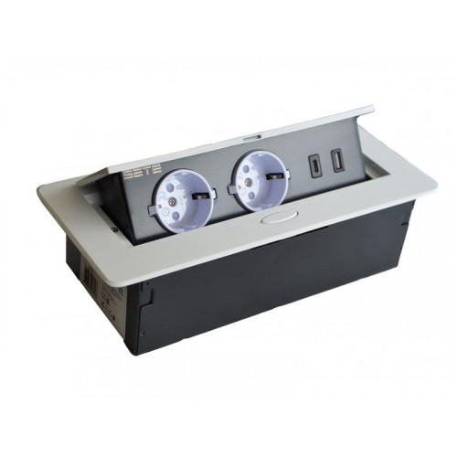 SETE Удлинитель SBT-R2UCTN-10 встраив.,2 гнезда,1 USB, 1 type C, БЕЛЫЙ,с кабелем