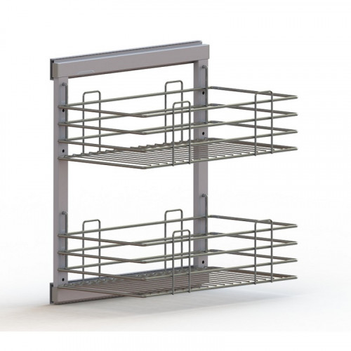Выдвижная рама с корзинами, 2 уровня, бок. крепеж 285х475х515, хром