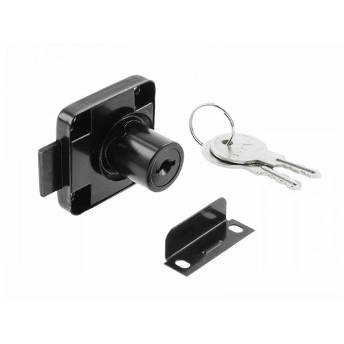 Замок мебельный 138 с планкой, простой ключ, ЧЕРНЫЙ